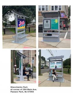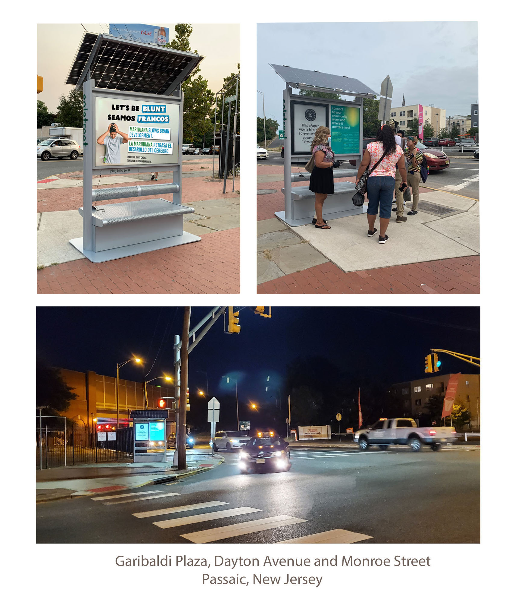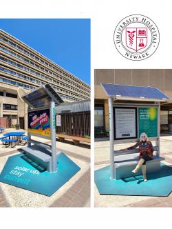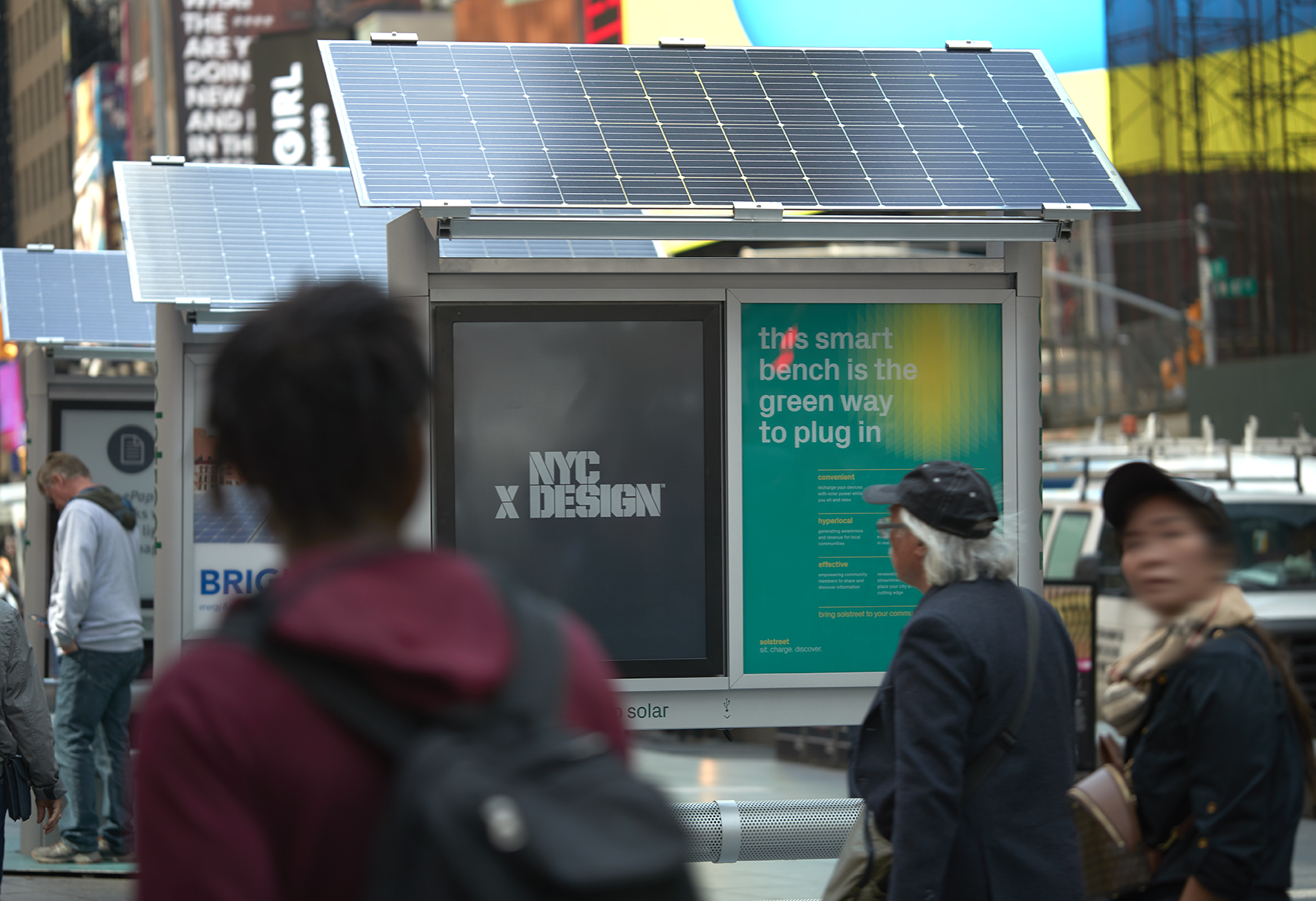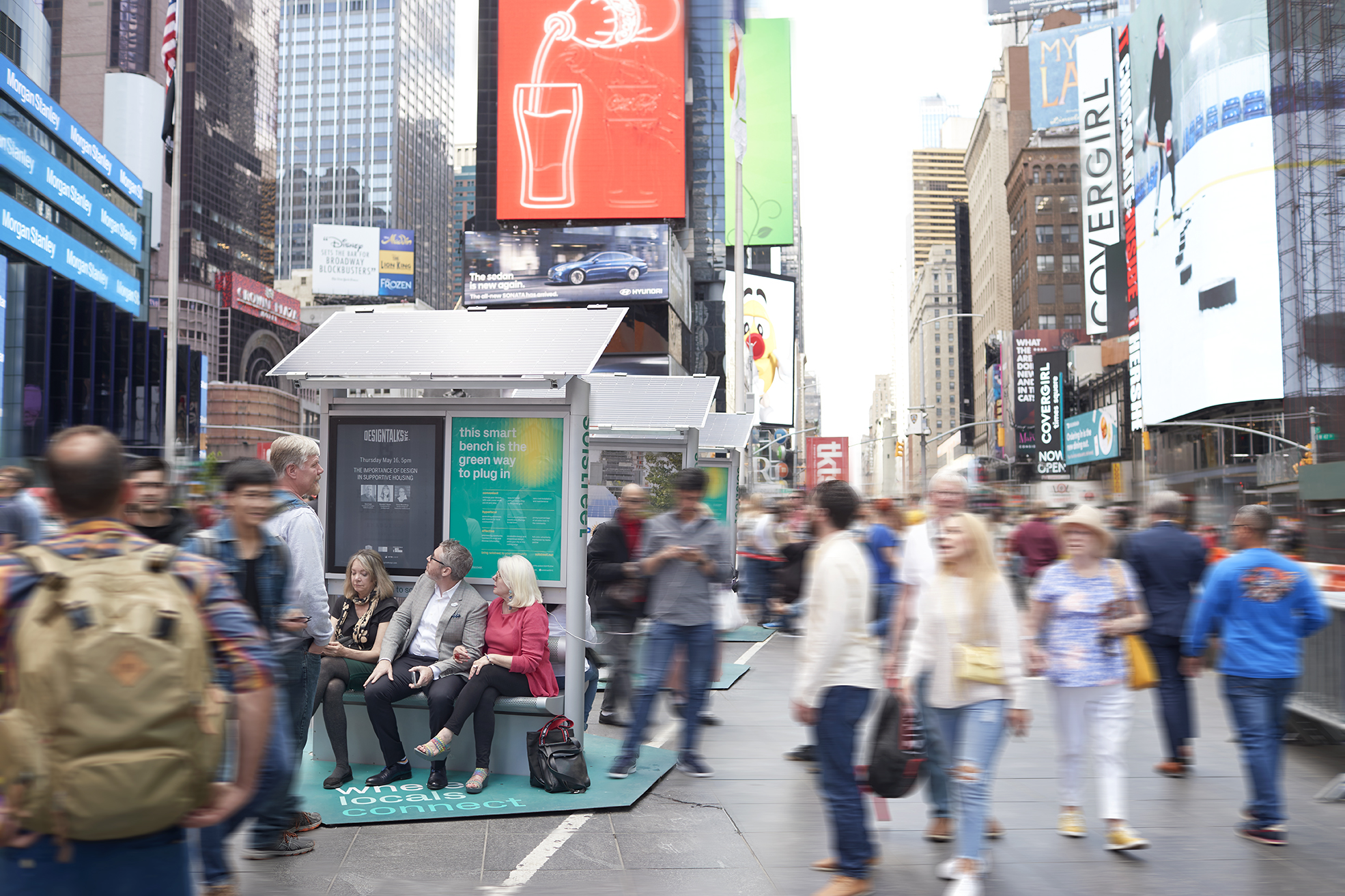 Visitors & neighbors stop by the solstreet bench to recharge while being updated on what's going on locally.