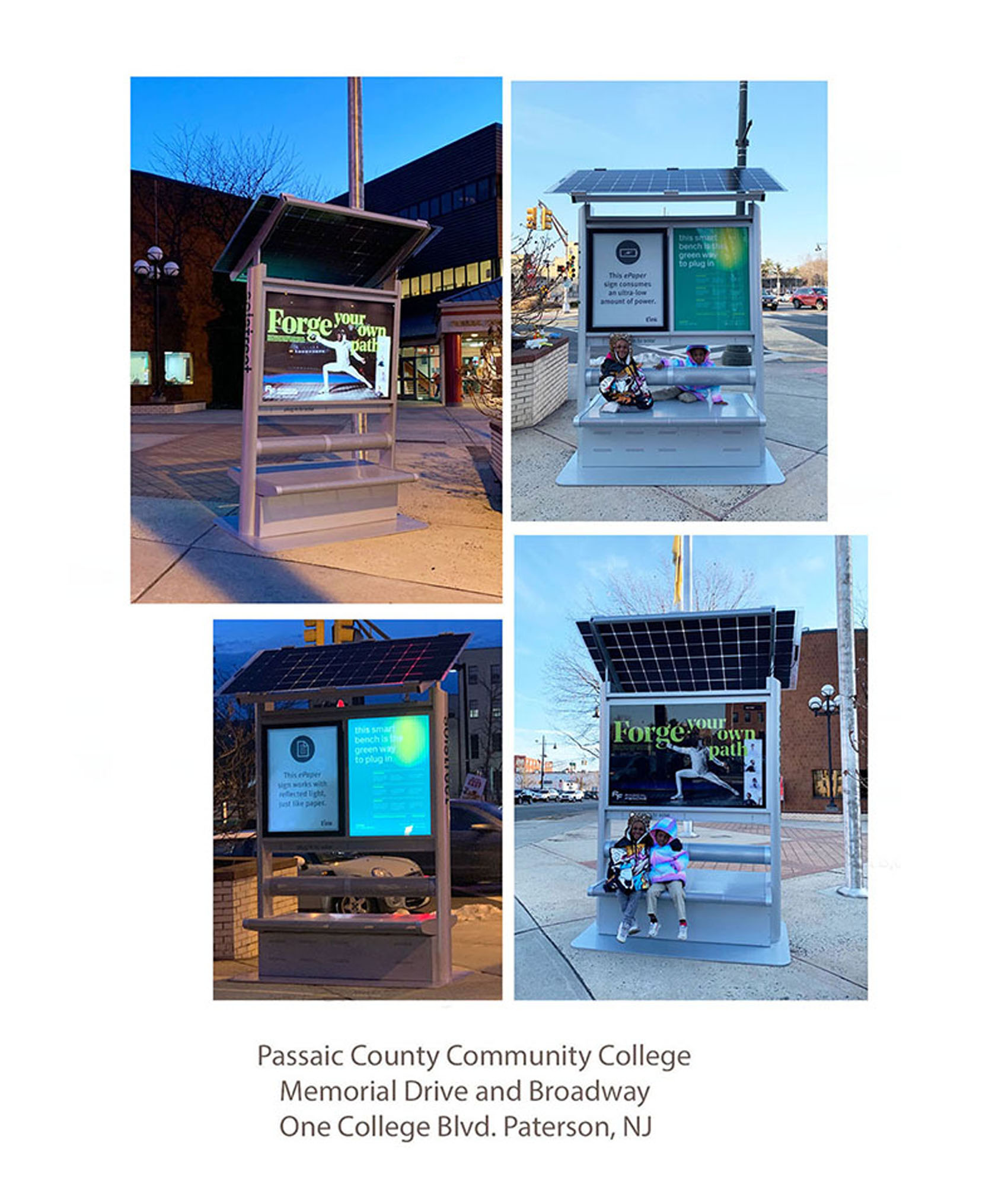 Public events and business offerings are communicated in real-time on the E Ink interactive bulletin board, while waiting for a friend or bus.