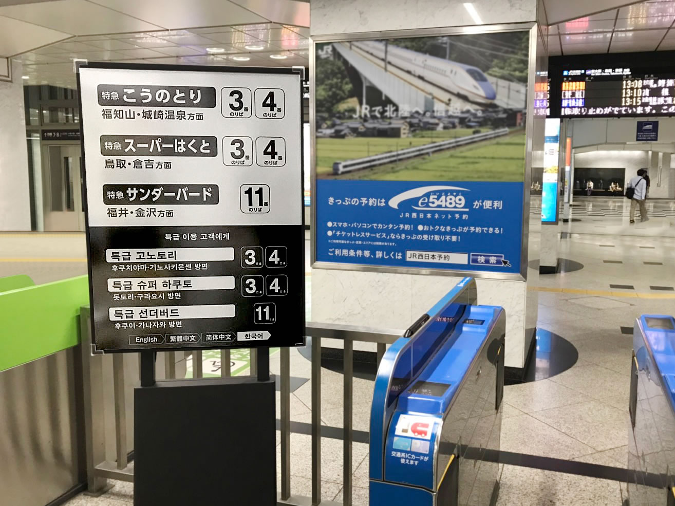 JR West will be utilizing sixteen (16) of E Ink’s 42” ePaper display, with the software and hardware designed by CREA, and installed and supported by DNP. Signs using E Ink’s unique material have a long battery life due to the bi-stable nature of the display – power is only utilized to change an image, and no power is required to show one. This core benefit was an important part of JR West’s decision to use E Ink displays. The power disruptions caused by typhoons and earthquakes means that a traditional LCD sign would not be able to display evacuation orders or traveler information; E Ink’s signs are able to keep that image displayed until power is back on, even if the battery dies. As most of the emergency directions are currently conveyed via a speaker in Japanese, these signs are essential for foreign visitors to understand evacuation plans. Emergency notifications will be updated on the signs immediately after a power outage or emergency declaration.